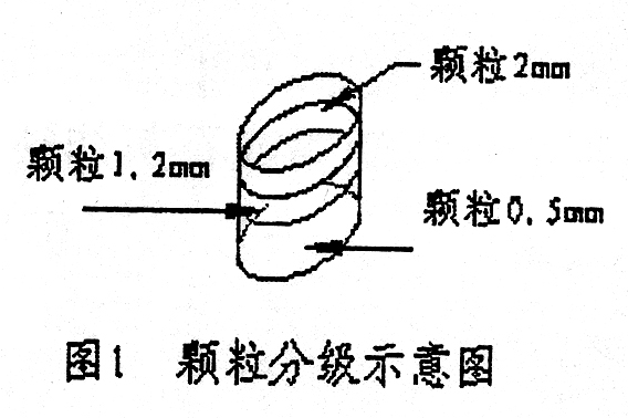 現(xiàn)場使用的分級篩的篩孔分別為2mm、1.2mm和0.5mm三種,篩分時把篩孔尺寸最大的篩合放最上層,篩孔尺寸最小的篩合放最下層,如圖1。其底合專為篩分時裝接細(xì)粉之用。